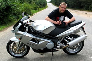 Rigo Richter ist hier mit seiner MZ 1000S auf der Landstraße in Richtung