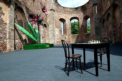 Ich photographierte auf der Bühne der Stiftsruine Bad Hersfeld ein einzigartiges Schachspiel :-)))